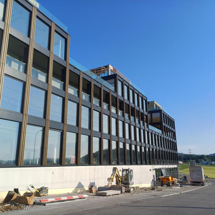 Wir befinden uns auf dem Areal der von Rotz AG, im Neubau West One.